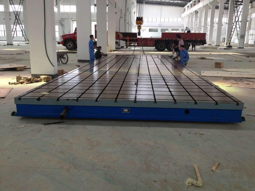 焊接平臺產品別名:鑄鐵焊接平板鑄鐵焊接平臺劃線平板 檢驗平板 測量平板 裝配平板 大型鑄鐵平板 大型鑄鐵平臺 焊接平臺按GB/4986-85的標準制造,產品制成筋板式和箱體式,工作有長方形,材料HT200,工作面采用刮研工藝,工作面上可加V型、T型、U型槽和圓孔、長孔等。平板是用于工件檢測或劃線的平面基準器具。平板安裝應調至水平、負荷均分布于各支點上,環境溫度(20±5℃)使用時應避免振動。 焊接平臺用途:用于機械、發動機的動力實驗,設備調試,具有較好的平面穩定性和韌性,表面帶有T型槽,可以用來固定實驗設備。 焊接平臺材質:高強度鑄鐵HT200-300工作面硬度為HB170-240,經過兩次人工處理(人工退火600度-700度和自然時效2-3年)使用該產品的精度穩定,耐磨性能好。 焊接平臺規格:100×100—3000×8000,(大于此規格的焊接平臺可以拼裝使用或按圖紙訂做。) 焊接平臺精度:按國家標準計量檢定規程執行,分別為0、1、2、3四個等級。 規格 | 精度等級 | 規格 | 精度等級 | 0級 | 1級 | 2級 | 3級 | 精刨 | 0級 | 1級 | 2級 | 3級 | 精刨 | 100×100 | 4 | 8 | 26 | | | 2500×2500 | | | 72 | 180 | 270 | 200×100 | 5 | 10 | 20 | | | 3000×1000 | | | | 168 | 248 | 200×200 | 5 | 10 | 20 | | | 3000×1500 | | | | 174 | 154 | 300×200 | 6 | 12 | 24 | | | 3000×2000 | | | | 184 | 275 | 300×300 | 6 | 12 | 24 | | | 3000×2500 | | | | 186 | 276 | 400×300 | 6 | 12 | 24 | | | 3000×3000 | | | | 210 | 300 | 400×400 | 6 | 12 | 24 | | | 4000×1000 | | | | 210 | 300 | 500×300 | 6 | 12 | 24 | | | 4000×1500 | | | | 210 | 300 | 500×500 | 7 | 14 | 28 | | | 4000×2000 | | | | 219 | 310 | 600×400 | 7 | 14 | 28 | | | 4000×2500 | | | | 228 | 340 | 600×500 | 7 | 14 | 28 | | | 4000×3000 | | | | 240 | 360 | 800×500 | 8 | 16 | 32 | 80 | | 5000×1500 | | | | 249 | 370 | 800×600 | 8 | 16 | 32 | 80 | | 5000×2000 | | | | 255 | 375 | 900×600 | 8 | 16 | 32 | 80 | | 5000×2500 | | | | 264 | 390 | 1000×750 | 9 | 18 | 36 | 90 | | 5000×3000 | | | | 287 | 420 | 1000×1000 | 10 | 20 | 39 | 96 | | 6000×1500 | | | | 287 | 420 | 1200×1000 | | 20 | 39 | 96 | | 6000×2000 | | | | 293 | 430 | 1500×1000 | | 24 | 48 | 120 | | 6000×2500 | | | | 300 | 450 | 1500×1500 | | 25 | 50 | 125 | | 6000×3000 | | | | 308 | 460 | 2000×1000 | | 26 | 52 | 129 | | 8000×1500 | | | | 366 | 500 | 2000×1500 | | | 56 | 140 | | 8000×2000 | | | | 370 | 520 | 2000×2000 | | | 60 | 152 | 230 | 8000×2500 | | | | 375 | 530 | 2500×1500 | | | 64 | 152 | 230 | 8000×3000 | | | | 382 | 570 | 2500×2000 | | | 68 | 168 | 248 | | |